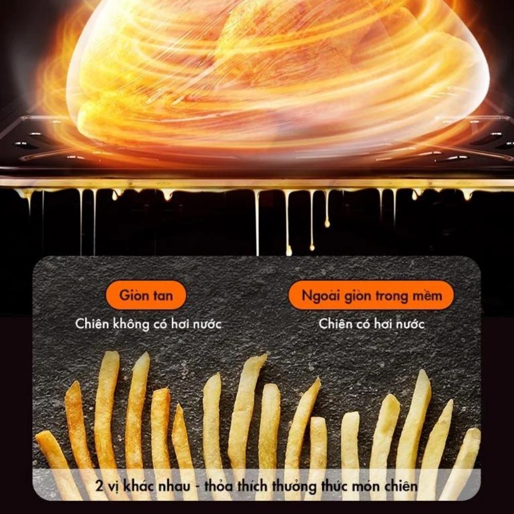 Mặt kính trong suốt quan sát toàn diện thấy rõ quá trình làm chín thực phẩm. quan sát xuyên suốt quá trình chiên nướng, hào hứng chờ món ngon.