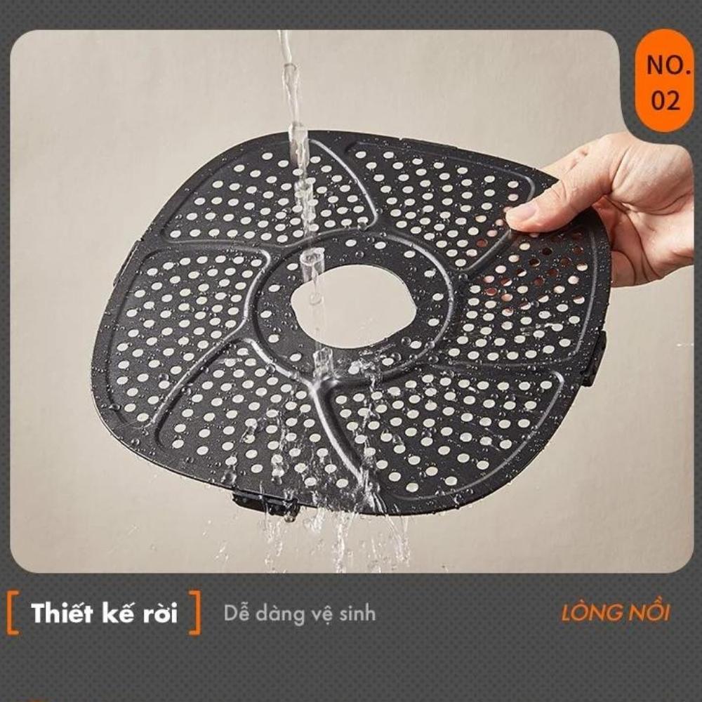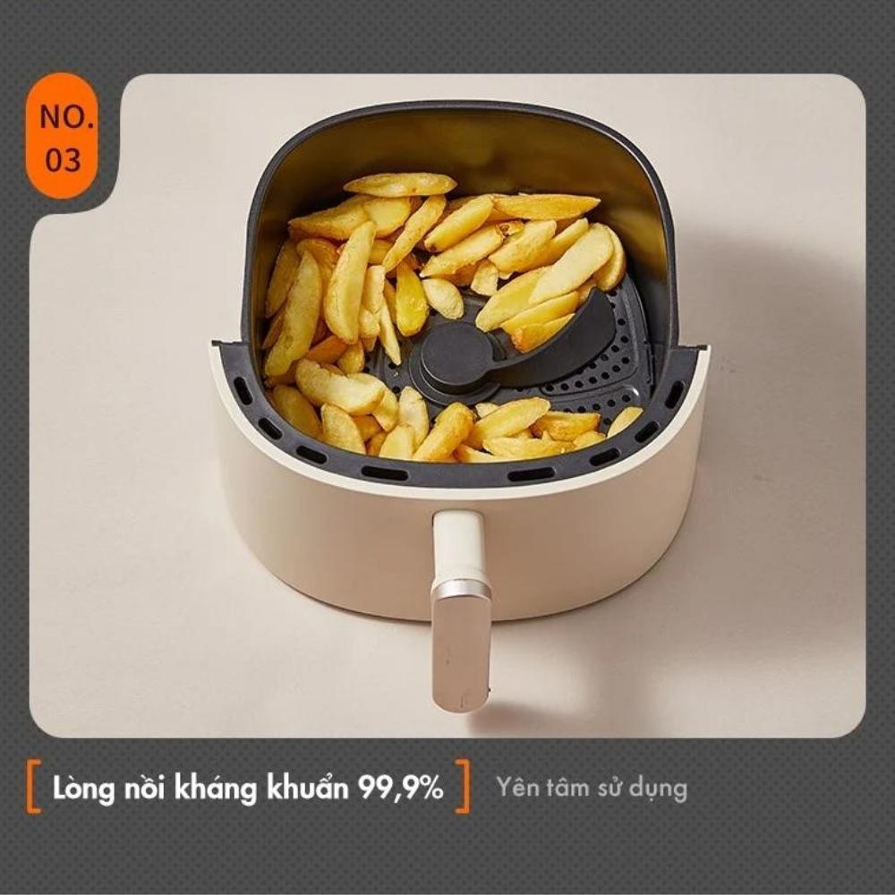 - Chât liệu lòng nồi và khay lọc dầu: kháng khuẩn, chống dính