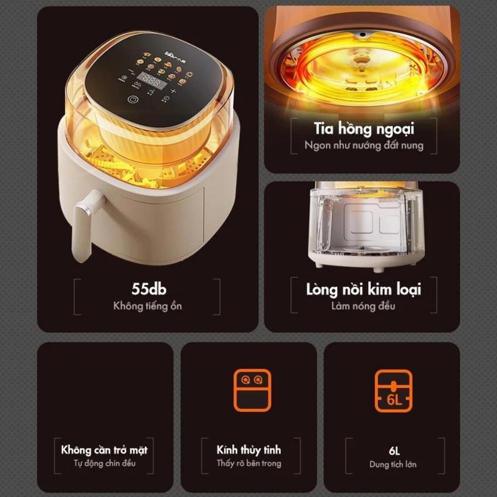 - Nồi chiên không dầu dung tích 6L, công suất: 1350W