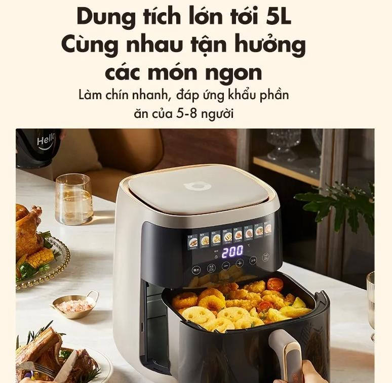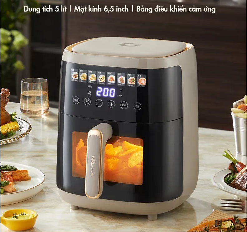 - Nồi chiên không dầu Bear có dung tích 5L, công suất 1500W