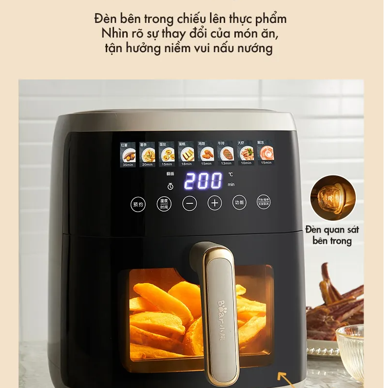 Nồi chiên không dầu Bear QZG-F15H1 mang lại trải nghiệm nấu ăn an toàn và hiệu quả, đáp ứng mọi nhu cầu ẩm thực của gia đình một cách nhanh chóng và tiện lợi.