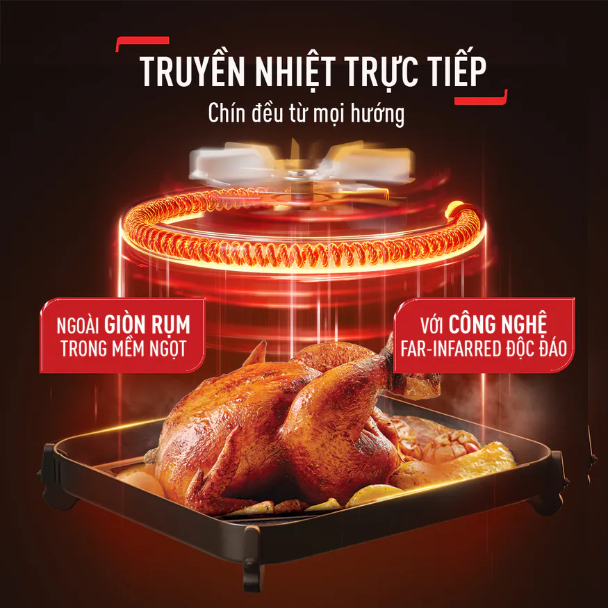 Công nghệ Far-Infrared tiên tiến: Sử dụng tia hồng ngoại xa giúp thực phẩm chín nhanh, đều và giữ trọn hương vị mà không cần lật.