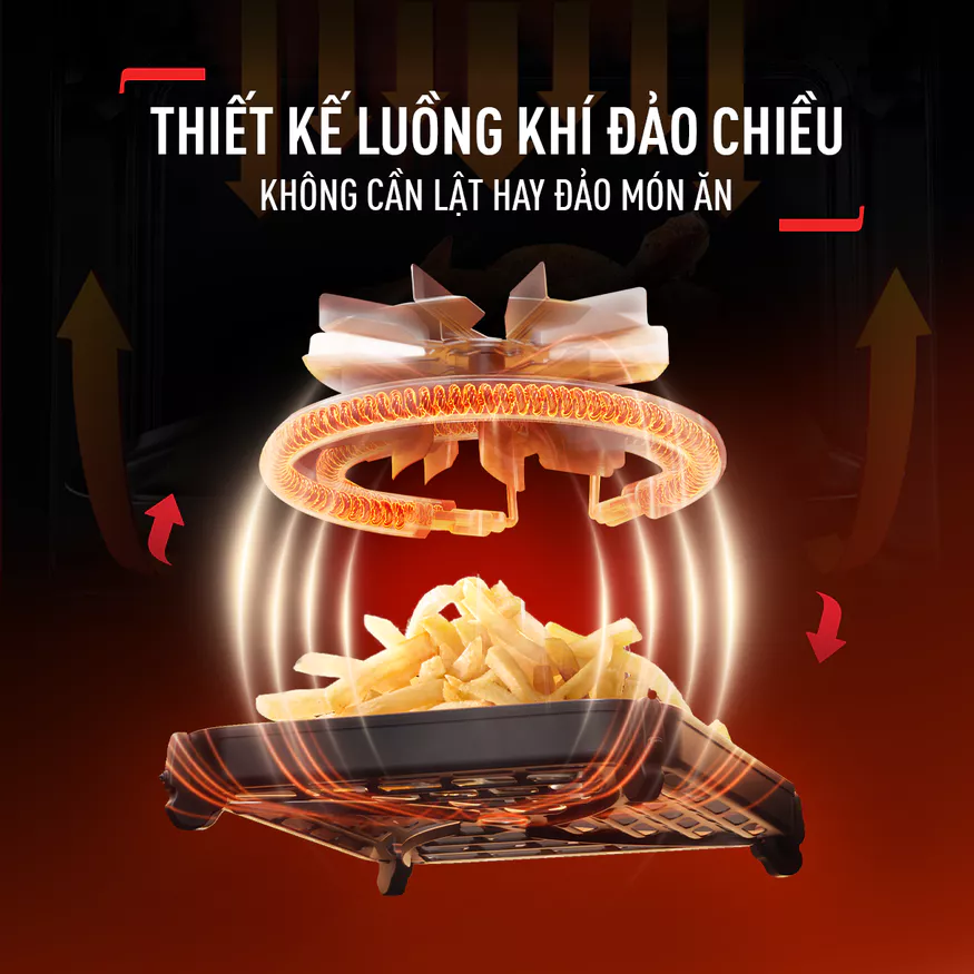 Giỏ chiên thông minh: Thiết kế giúp lưu thông không khí đa chiều, không cần lật thực phẩm, dễ tháo rời và vệ sinh.