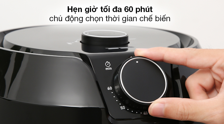 Với thiết kế vô cùng đơn giản chỉ bằng 1 núm vặn phía trước nồi, người dùng có thể dễ dàng lựa chọn cho mình khoảng thời gian để làm chín thực phẩm từ 0 - 60 phút, nhờ đó không lo món ăn chín không tới hay bị cháy khét.