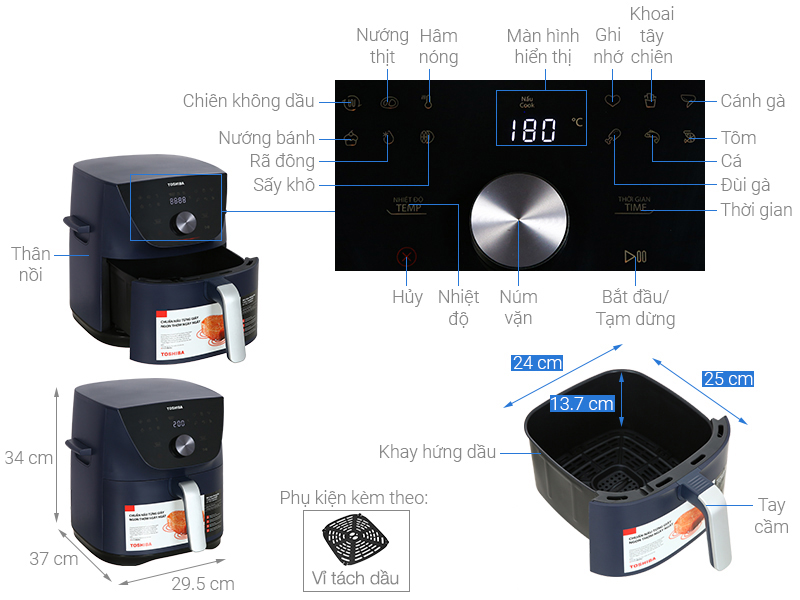 Chức năng nấu: Chiên, nướng, rã đông, sấy khô