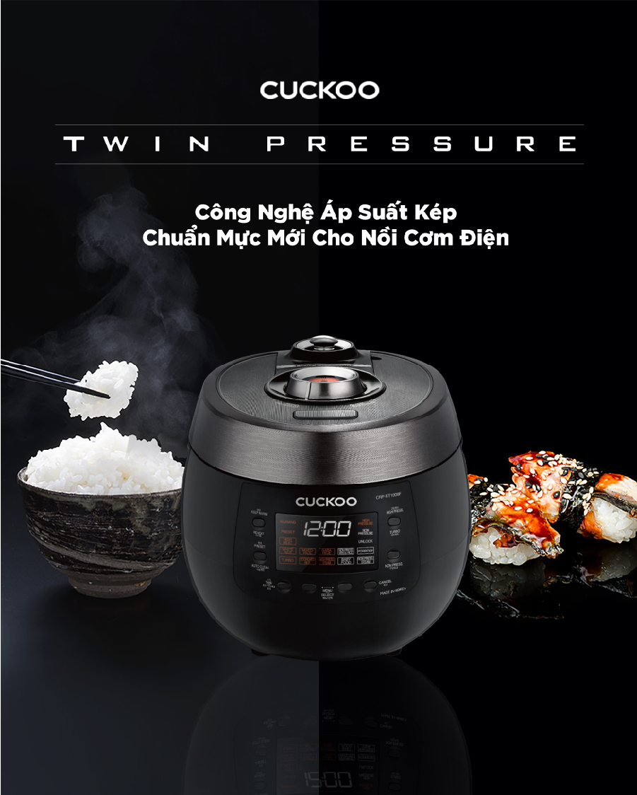 Nồi cơm áp suất điện tử Cuckoo CRP-RT1008F/BKTSVNCV sở hữu công nghệ áp suất kép TWIN PRESSURE