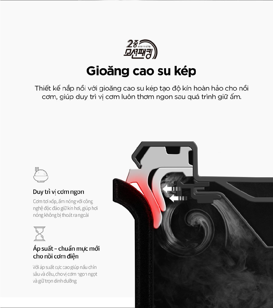 Nồi cơm áp suất điện tử Cuckoo CRP-RT1008F/BKTSVNCV với Gioăng cao su kép tạo độ kín hoàn hảo cho nồi