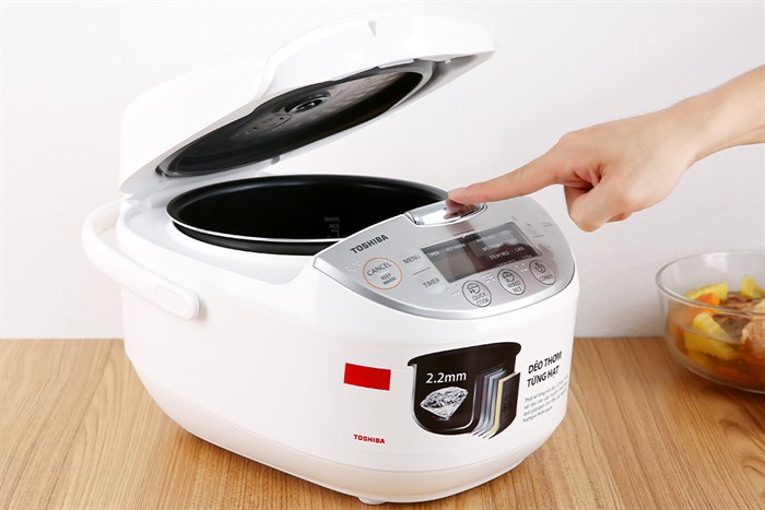 Nồi cơm điện tử Toshiba RC-10DH2PV(W) được trang bị bảng điều khiển điện tử hiện đại với các nút nhấn nhạy bén và màn hình hiển thị rõ ràng, giúp bạn dễ dàng thao tác và lựa chọn các chức năng nấu. Thực đơn đa dạng với 11 chế độ nấu được cài đặt sẵn bao gồm: nấu nhanh, cơm trộn, cháo, gạo trắng, gạo lứt, gạo nếp (xôi), cơm cháy, súp, làm bánh, nấu cơm sushi và hấp. Ngoài ra, nồi còn có nút chức năng giữ ấm (lưu ý không giữ ấm quá 6 giờ để cơm không bị mất ngon hoặc đổi màu) và chức năng hẹn giờ nấu lên đến 24 tiếng, mang đến sự tiện lợi tối đa cho người sử dụng.