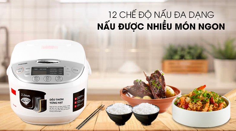 Nồi cơm điện tử Toshiba này tích hợp đến 11 chương trình nấu tự động đa dạng, đáp ứng mọi nhu cầu nấu nướng của gia đình bạn. Với các chương trình được thiết lập sẵn như nấu súp, nấu nhanh, làm bánh, hấp, nấu gạo trắng, gạo nếp, gạo lứt, cơm trộn, cơm sushi, cơm cháy và cháo, bạn chỉ cần một nút nhấn để chuẩn bị những bữa ăn ngon mà không tốn nhiều thời gian.