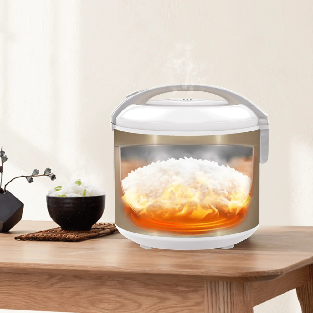 Lòng nồi dày giúp truyền nhiệt đồng đều, giữ nhiệt tốt, từ đó cơm chín kỹ mà không bị khô hay sống cục bộ. Chất liệu an toàn, không phản ứng với thực phẩm, đảm bảo sức khỏe cho cả gia đình.