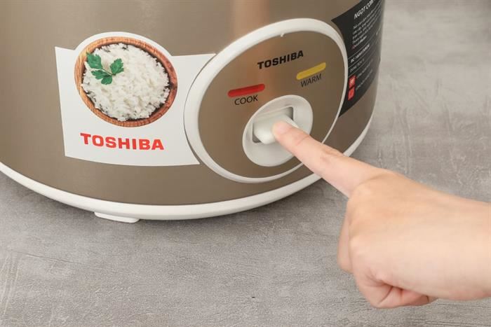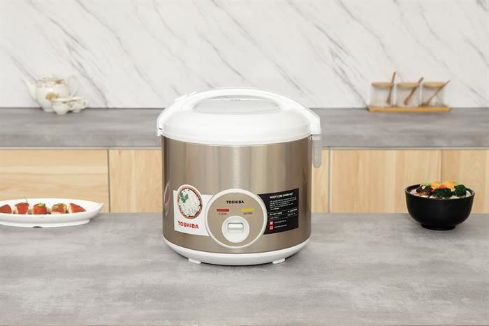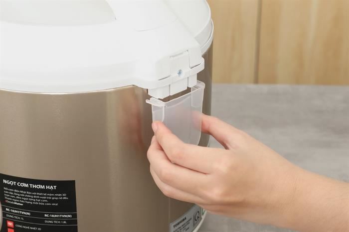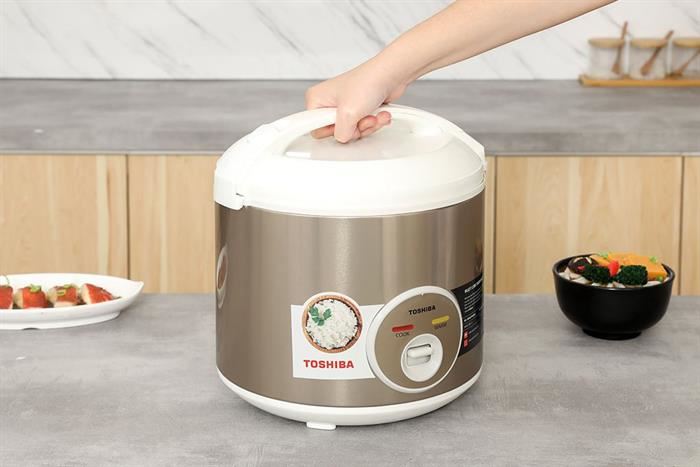 Nồi cơm điện Toshiba kết hợp tinh tế giữa hai tông màu trắng và vàng kim, phù hợp cho nhiều phong cách nội thất, từ cổ điển đến hiện đại. Phần tay cầm bố trí trên nắp nồi giúp việc mở nắp, di chuyển nồi dễ dàng hơn mà không bị nóng tay. Thiết kế nắp gài giữ nhiệt hiệu quả, vừa tiết kiệm điện, vừa giúp cơm chín đều và giữ ấm tốt hơn.