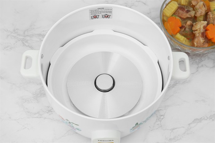 Nồi cơm điện Toshiba RC-18MH1PV(F) có kiểu dáng nhỏ gọn, gam màu trắng kết hợp hoa văn tinh tế, mang lại cảm giác sang trọng, phù hợp với mọi không gian bếp hiện đại. Nắp rời bằng inox sáng bóng không chỉ tăng tính thẩm mỹ mà còn dễ lau chùi, chống móp méo hiệu quả.