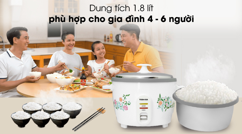Với dung tích 1.8 lít, Nồi cơm điện Toshiba 1.8 lít RC-18MH1PV(F) phục vụ tốt cho nhu cầu của gia đình 4 - 6 thành viên. Dù nấu nhiều hay ít, cơm vẫn được nấu chín đều và giữ trọn vị thơm ngon.