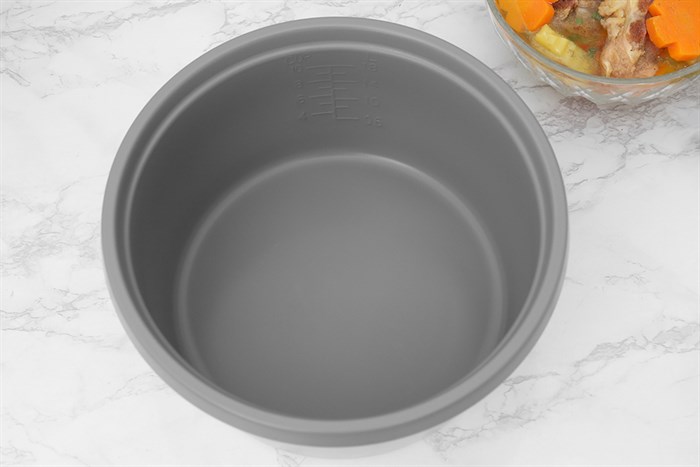 Lòng nồi làm từ hợp kim nhôm phủ chống dính, dày 1.063 mm, cho khả năng giữ nhiệt tốt, nấu cơm chín đều, không dính cháy. Bạn hoàn toàn yên tâm khi sử dụng lâu dài mà vẫn đảm bảo sức khỏe cho cả gia đình. Sau khi dùng, việc vệ sinh cũng trở nên dễ dàng và nhanh chóng hơn bao giờ hết.