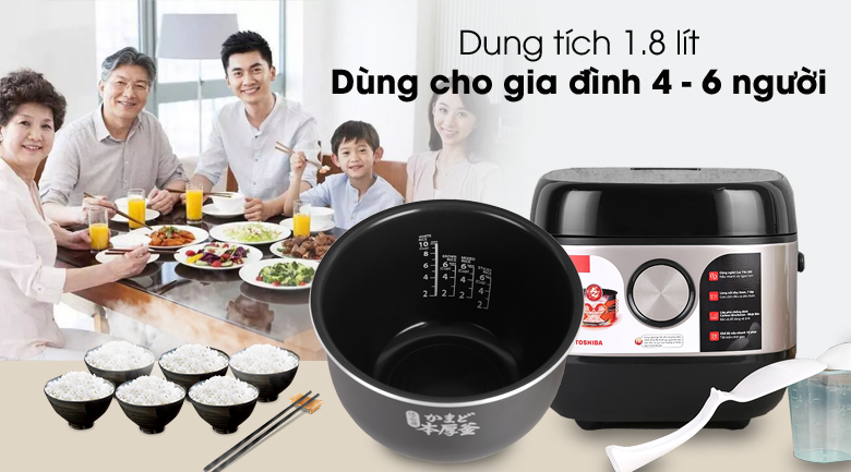 Với dung tích 1.8 lít, nồi phù hợp cho gia đình từ 4 đến 6 thành viên.