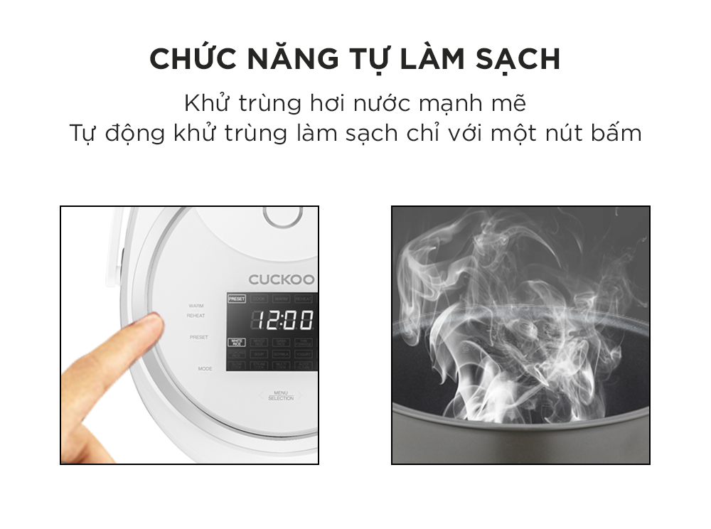 Tích hợp 3 chức năng: Tự làm sạch chỉ với 1 nút bấm đơn giản; Chế độ hẹn giờ linh hoạt mà Nồi cơm điện tử này mang lại, nó giúp bạn dễ dàng làm nhiều việc hơn trong thời gian nấu cơm; Khay hứng nước thừa làm sạch nước cơm đọng bên trong nồi khi nấu và vẫn duy trì vị cơm ngon.