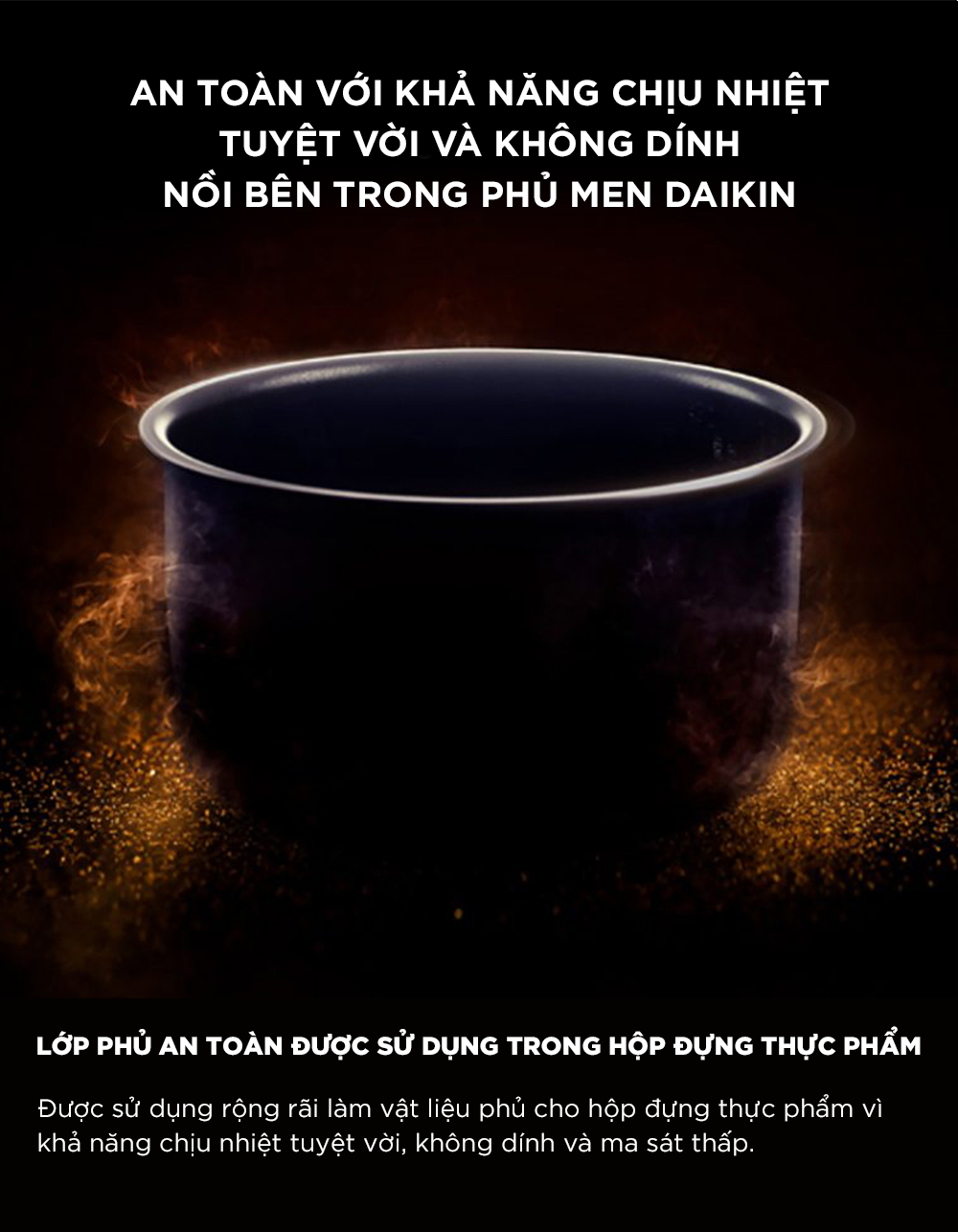 Lớp phủ dày bền, nấu cơm an toàn, chống dính, dễ dàng vệ sinh.