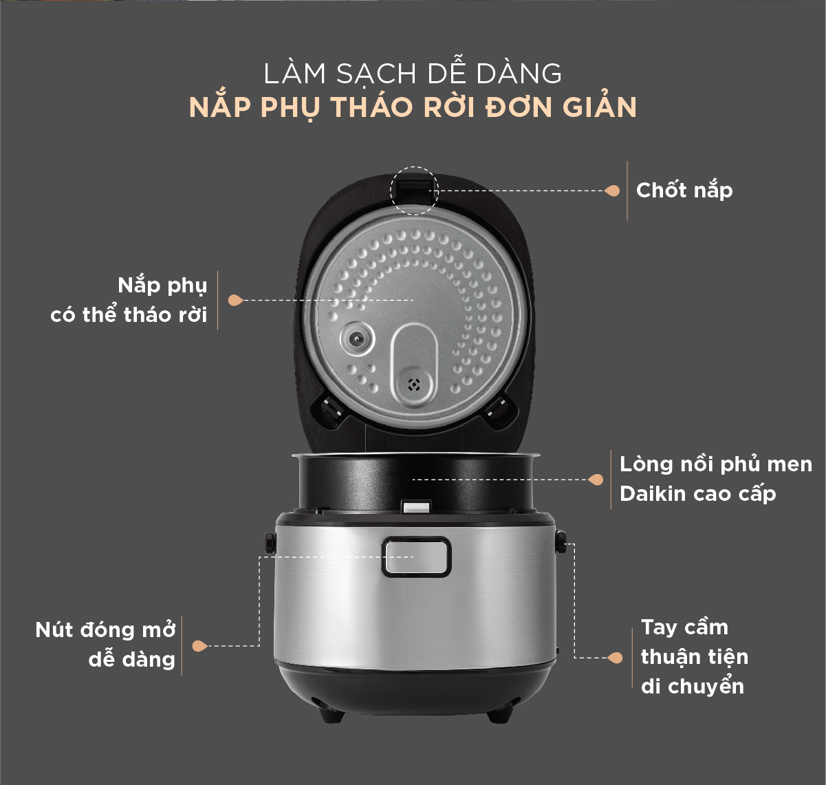 - Vệ sinh dễ dàng với nắp phụ có thể tháo rời