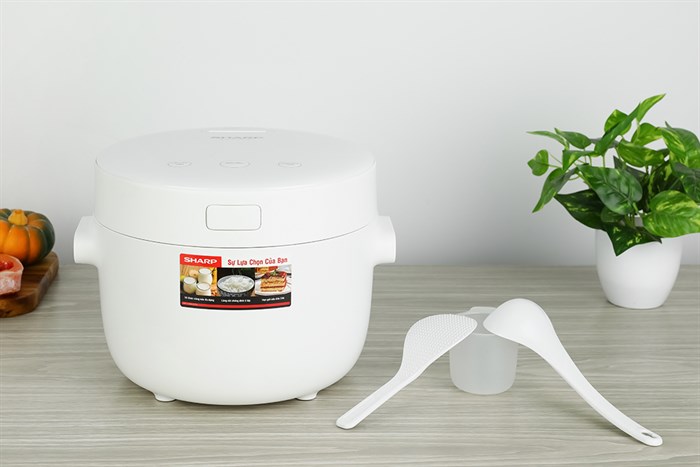 Nồi Cơm Điện Tử Sharp KS-COM110DV-WH có màu trắng thanh lịch, tay cầm hai bên tiện lợi cho việc di chuyển.