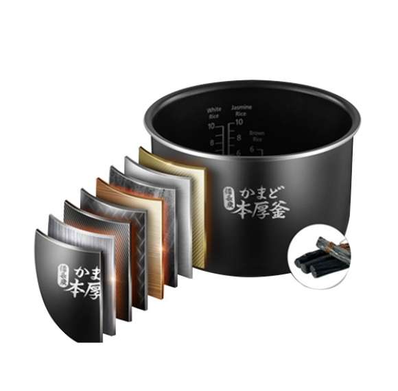 Lòng nồi của nồi cơm điện tử Toshiba 1.8L được phủ lớp Binchotan – loại than trắng cao cấp từ Nhật Bản, giúp tăng khả năng giữ nhiệt và truyền nhiệt hiệu quả. Được nung ở nhiệt độ 1300°C, lớp phủ này giúp hạt cơm chín đều, mềm dẻo hơn, mang lại bữa ăn trọn vẹn.