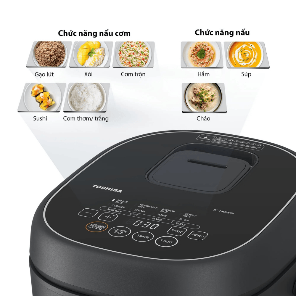 Không chỉ giới hạn trong việc nấu cơm, Nồi Cơm Điện Toshiba RC-18DR4TVN(H) còn hỗ trợ 8 chương trình nấu tiện lợi: