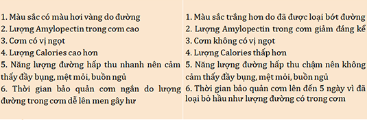 So sánh giữ cơm thường và cơm được nấu tách đường.