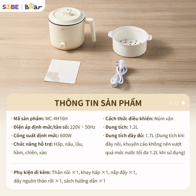 Nồi điện đa năng Bear MC-4H16H 1.2 lít là lựa chọn thông minh cho những ai muốn sở hữu một thiết bị nhỏ gọn nhưng có thể thay thế cả bếp, nồi và xửng hấp. Với thiết kế tiện dụng, công suất linh hoạt và nhiều tính năng an toàn, sản phẩm này mang lại trải nghiệm nấu ăn nhanh chóng, tiết kiệm không gian và phù hợp với cuộc sống hiện đại.