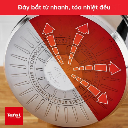 Nồi hấp inox Tefal E3089504 sử dụng cấu trúc đáy 3 lớp đặc biệt: