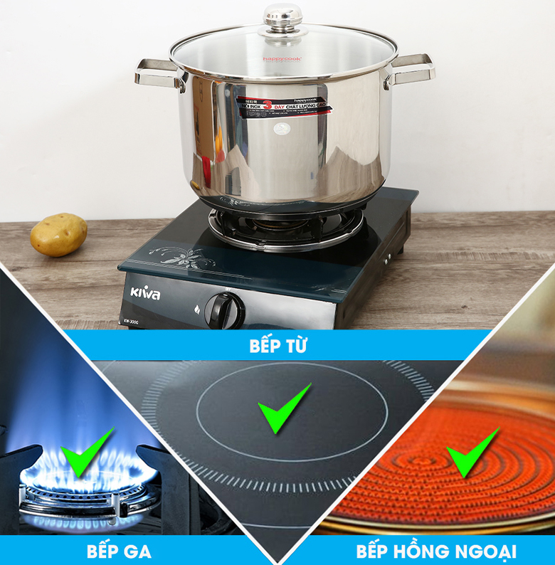 - Sử dụng được trên tất cả các loại bếp kể cả bếp từ.