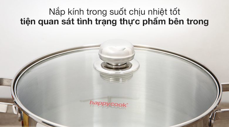 Đặc điểm nổi bật của sản phẩm nồi inox 3 đáy nắp kiếng 30cm Happycook NC-30G