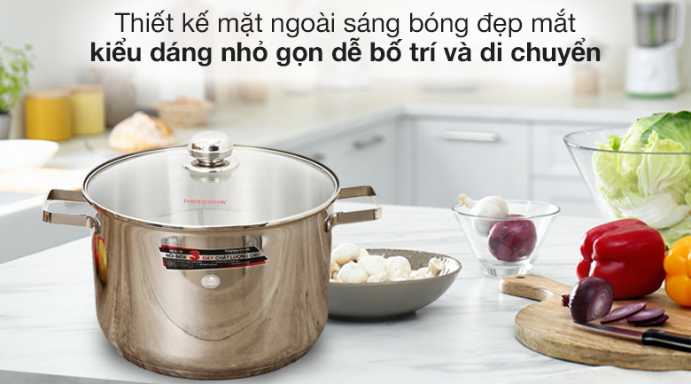 Nồi inox 3 đáy nắp kiếng 30cm Happycook NC-30G với chất liệu Inox luôn sáng bóng, không trầy xước giúp bạn dễ dàng vệ sinh hơn cùng với các thiết bị gia dụng nhà bếp khác cùng lúc.