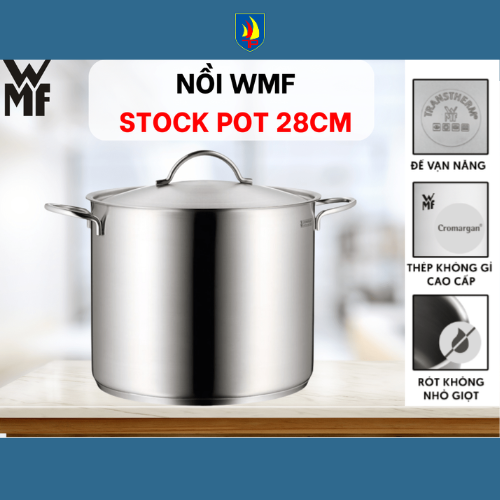 Nếu bạn đang tìm một chiếc nồi inox đáy từ lớn, bền, nấu nhanh và phù hợp mọi kiểu bếp trong gia đình thì Nồi inox đáy từ WMF StockPot 28cm – 0795386030 là lựa chọn gần như “không thể sai”. Đây là sản phẩm thuộc dòng nồi nấu cao cấp của WMF - thương hiệu gia dụng nổi tiếng hơn 170 năm của Đức. Với dung tích lớn, thiết kế tinh gọn, vật liệu bền bỉ và khả năng dẫn nhiệt vượt trội, chiếc Nồi inox đáy từ WMF 28cm nhanh chóng trở thành “người bạn đồng hành” quen thuộc trong nhiều căn bếp hiện đại.