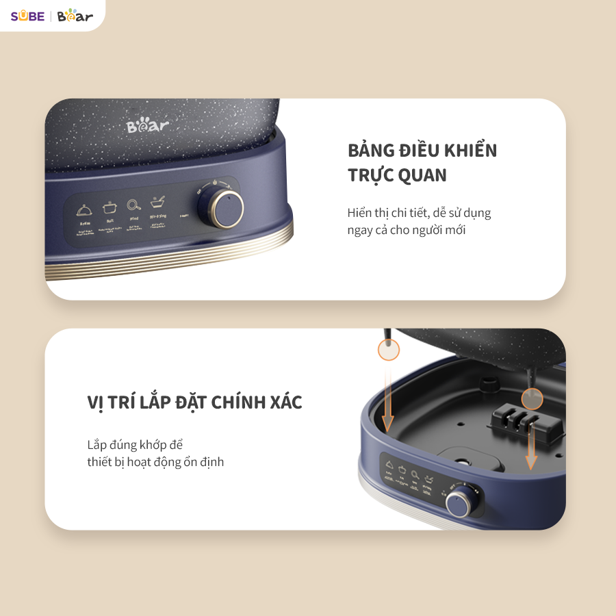 Nồi lẩu Bear 2 ngăn SB-NL60U sở hữu thiết kế bo tròn mềm mại, tối giản nhưng tinh tế, tạo cảm giác thân thiện và an toàn khi sử dụng. Tông màu trang nhã dễ dàng hài hòa với mọi không gian bếp, biến chiếc nồi thành điểm nhấn trang trí bên cạnh công năng nấu nướng.