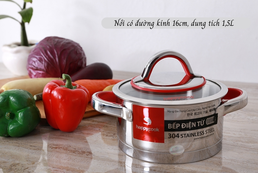 - Nồi inox có đường kính 16cm, dung tích 1,5L