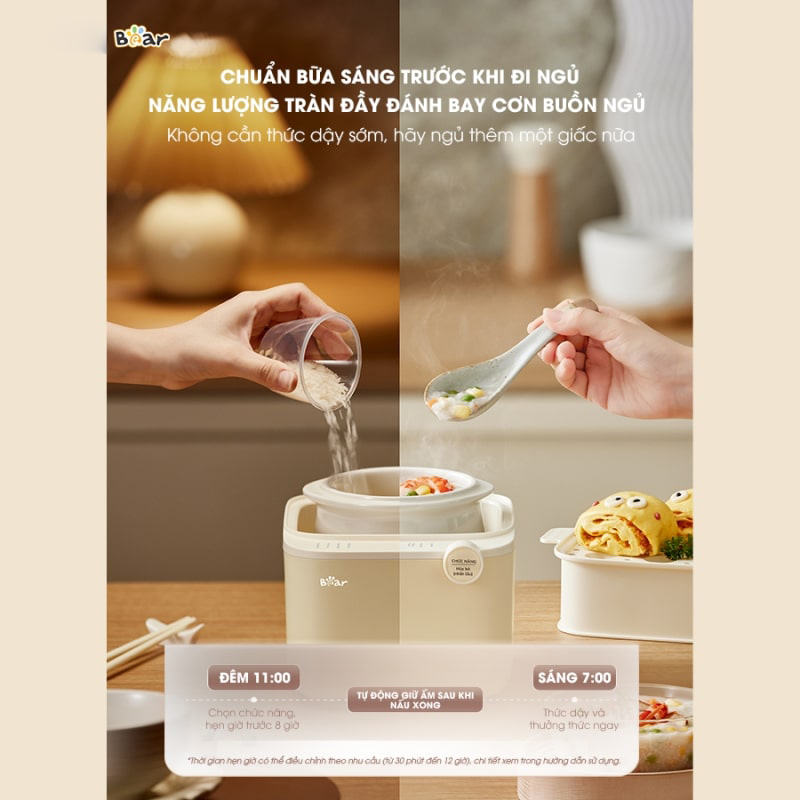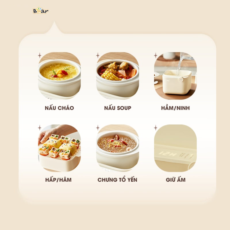Nồi Nấu Chậm Bear SB-NNC08 là lựa chọn lý tưởng cho những ai yêu thích món ăn mềm nhừ, giữ nguyên dưỡng chất mà không mất nhiều thời gian chế biến. Nếu bạn là một bà mẹ bận rộn muốn nấu cháo dinh dưỡng cho bé, hay một người sống một mình nhưng vẫn muốn bữa ăn ngon lành, thì Nồi Nấu Chậm Bear 0.8 lít chính là trợ thủ đắc lực giúp bạn chuẩn bị bữa ăn dễ dàng hơn bao giờ hết.