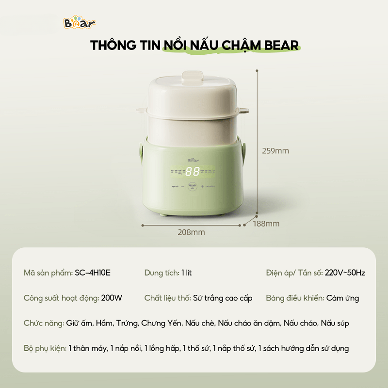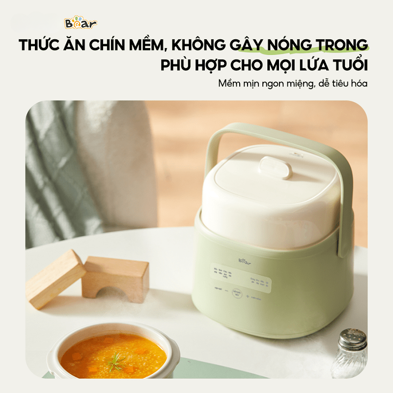 Với những ưu điểm vượt trội, Nồi Nấu Chậm Bear SB-NNC10 (1 Lít) không chỉ giúp tiết kiệm thời gian nấu nướng mà còn đảm bảo sức khỏe cho cả gia đình. Hãy trang bị ngay một chiếc nồi nấu chậm thông minh để bữa ăn trở nên trọn vẹn hơn!