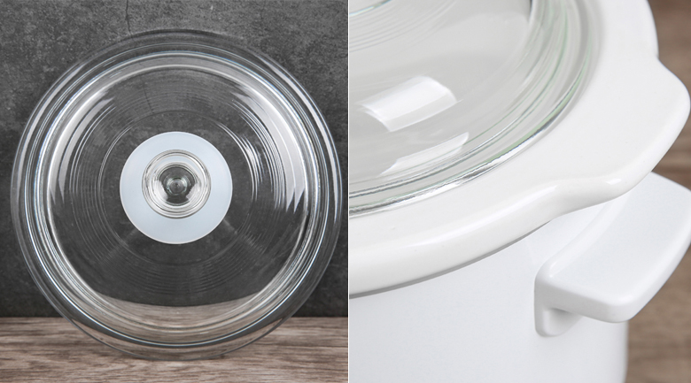 Nắp thủy tinh sang trọng giữ kín nhiệt và tránh bay mùi khi nấu. Núm cao su silicone ở nắp nồi bảo vệ người dùng, tránh bỏng tay.