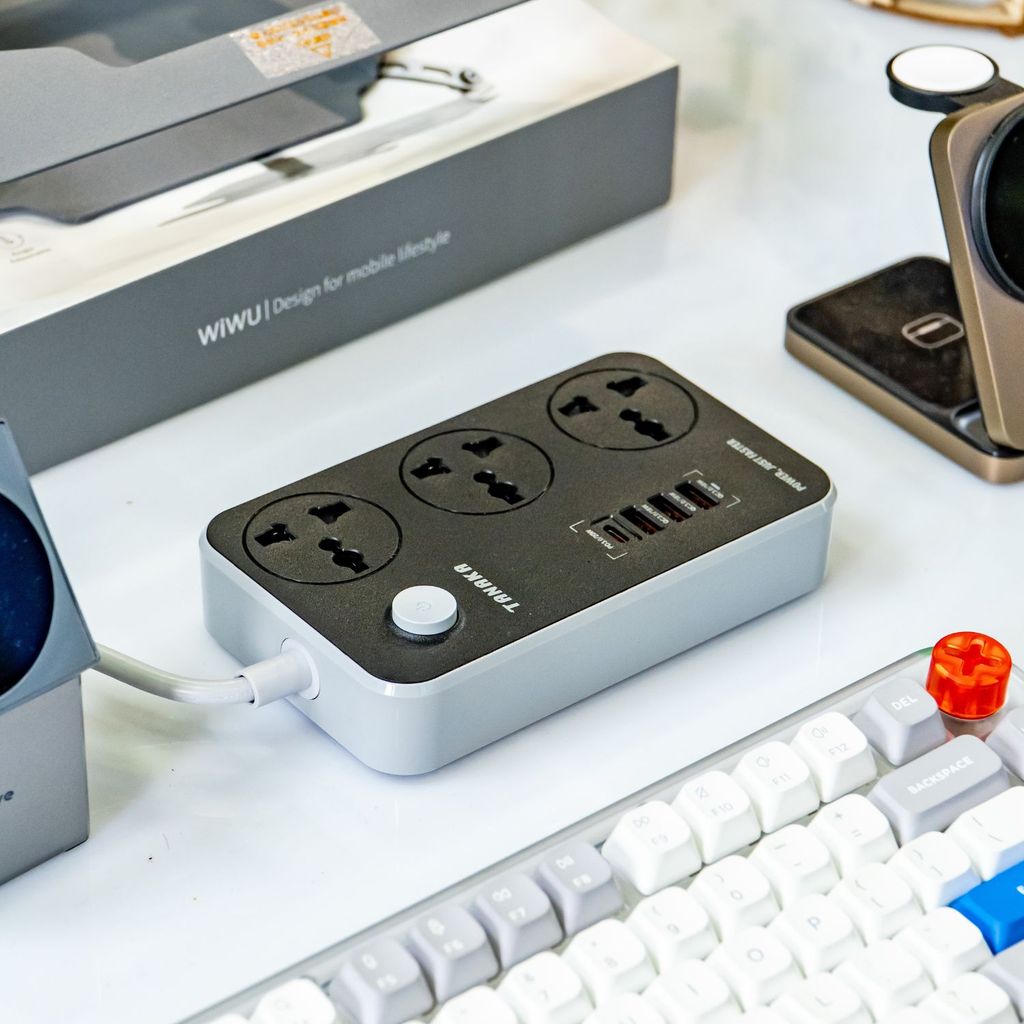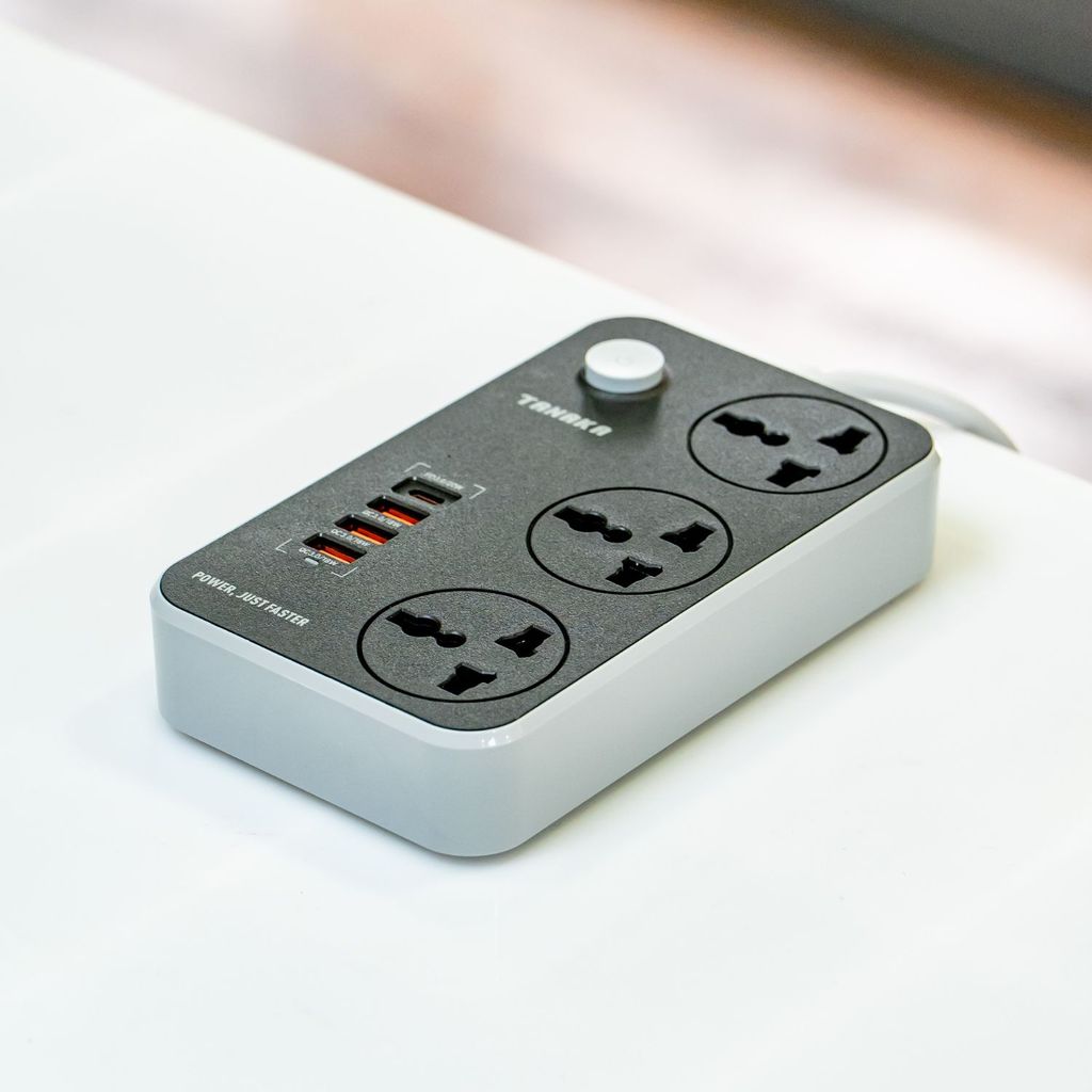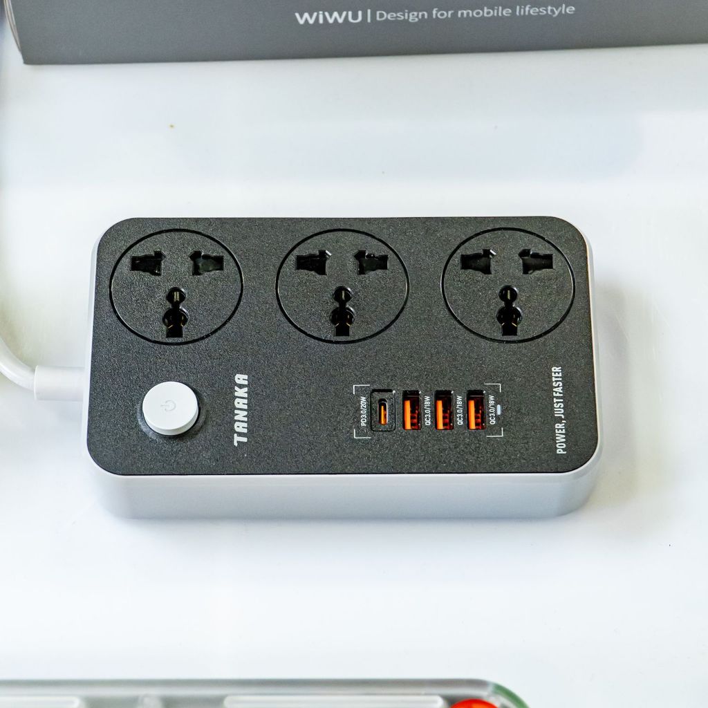 Sạc đa cổng: 3 ổ cắm + 4 cổng USB (3 USB-A, 1 USB-C)