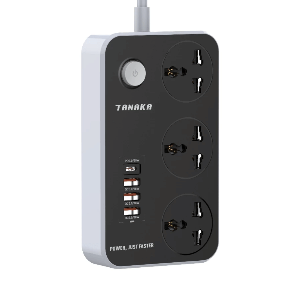 Ổ sạc Tanaka TNK-OD4323 được trang bị 3 ổ cắm điện đa năng (chuẩn 2 chấu và 3 chấu) phù hợp nhiều thiết bị như TV, máy in, nồi cơm điện, quạt…