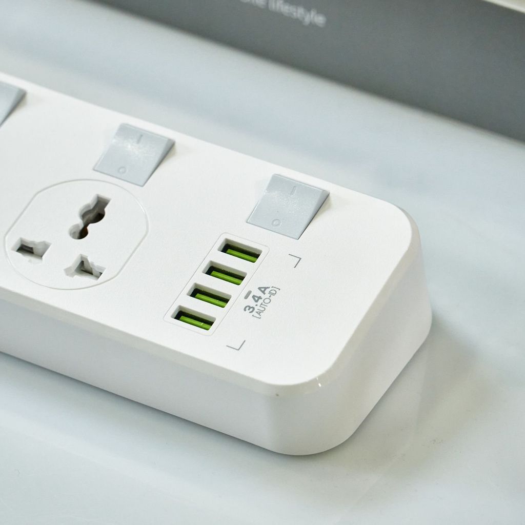Sản phẩm được trang bị 4 ổ cắm đa năng (chuẩn 2 chấu và 3 chấu), tương thích với nhiều loại thiết bị điện như quạt, nồi cơm điện, sạc laptop…