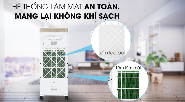 - Tấm lưới chắn bụi, lọc không khí: Được đặt ở các mặt bên và sau của quạt, giúp lọc bụi bẩn trong không khí trước khi đi vào tấm làm mát.