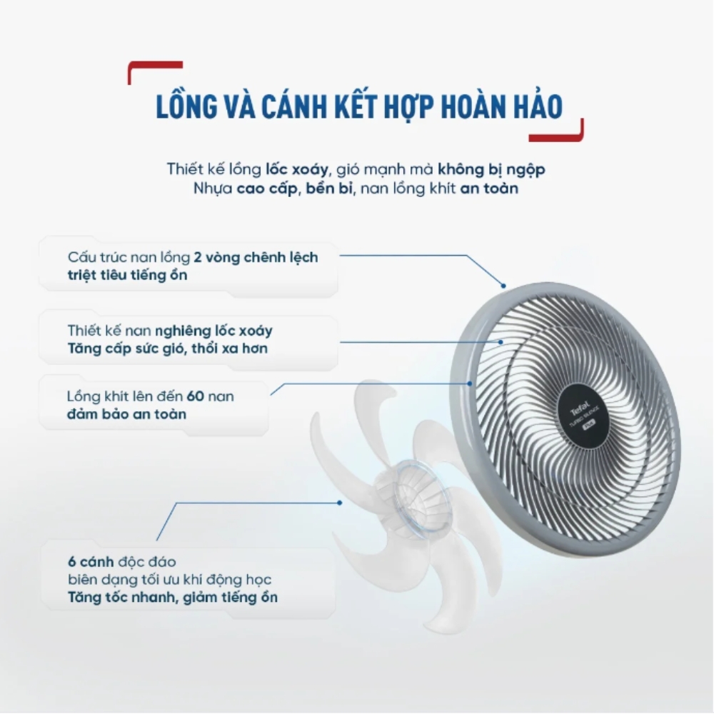 - Quạt sàn Tefal có 6 cánh, 3 Tốc độ gió