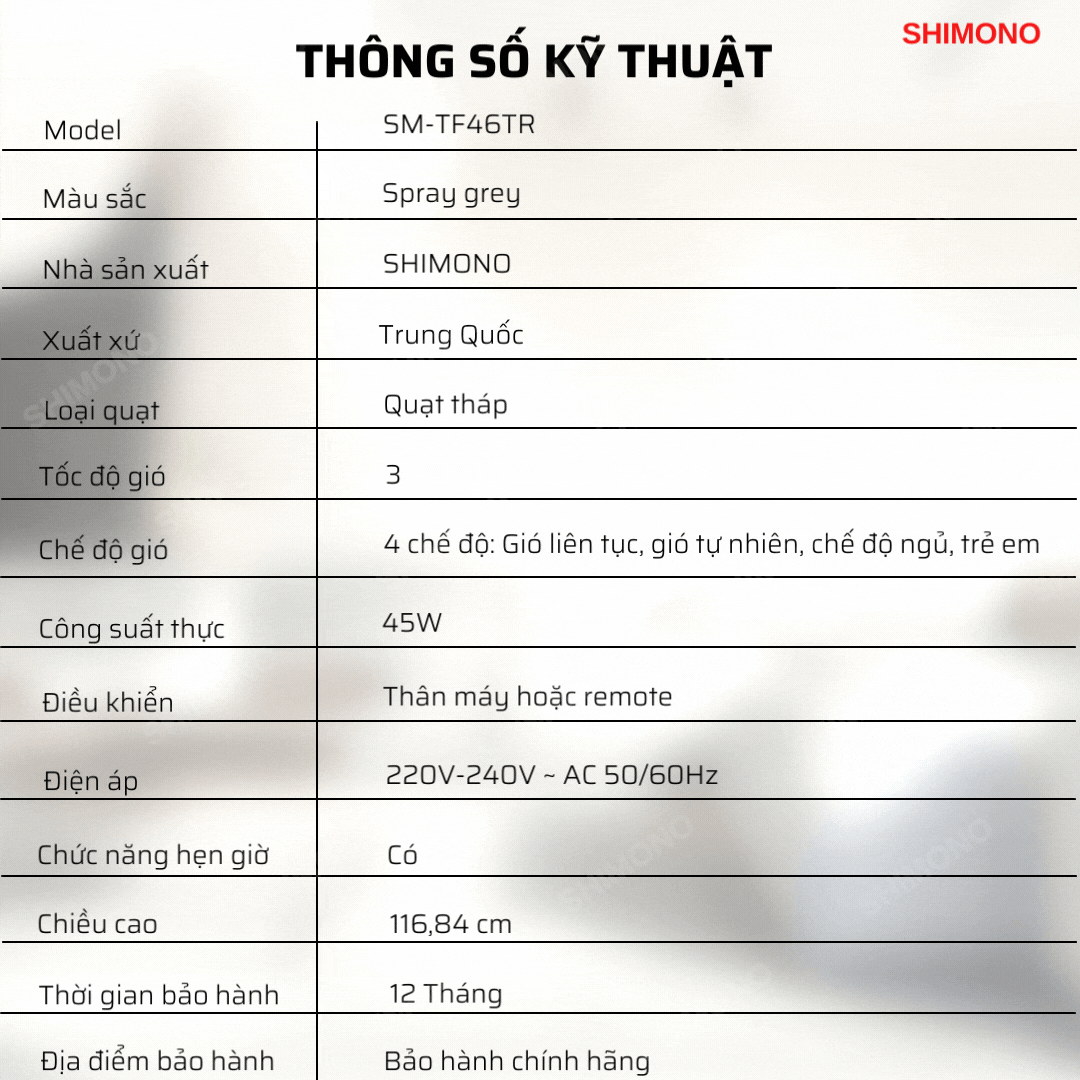 Quạt tháp Shimono SM-TF46TR là một sản phẩm thiết bị gia đình phù hợp với mọi gia đình ở Việt Nam. Đặc biệt là những ngày hè nóng bức. Sản phẩm thích hợp cho môi trường không gian mở. Sản phẩm Quạt tháp Shimono SM-TF46TR có kích thước nhỏ gọn vừa vặn trong gia đình.