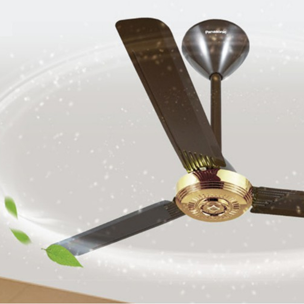 Quạt trần Panasonic F-56NCL-S có mặt động cơ màu vàng đồng bóng với các sọc vành, cùng các cánh quạt màu đen thẫm tạo nét cổ điển, rất thích hợp cho các không gian xưa tĩnh lặng, quầy ẩm thực, quán cà phê nhạc cổ điển,...