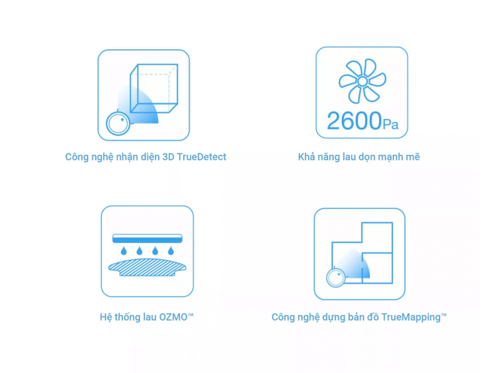 N8 Pro Plus sở hữu công suất hút mạnh mẽ lên đến 2600Pa và tốc độ quay cánh quạt 19.000 RPM, giúp làm sạch mọi loại bụi bẩn và phấn hoa. Hệ thống lau OZMO Mopping kết hợp giữa hút và lau đa sàn, loại bỏ nhiều vi khuẩn và bụi hơn.