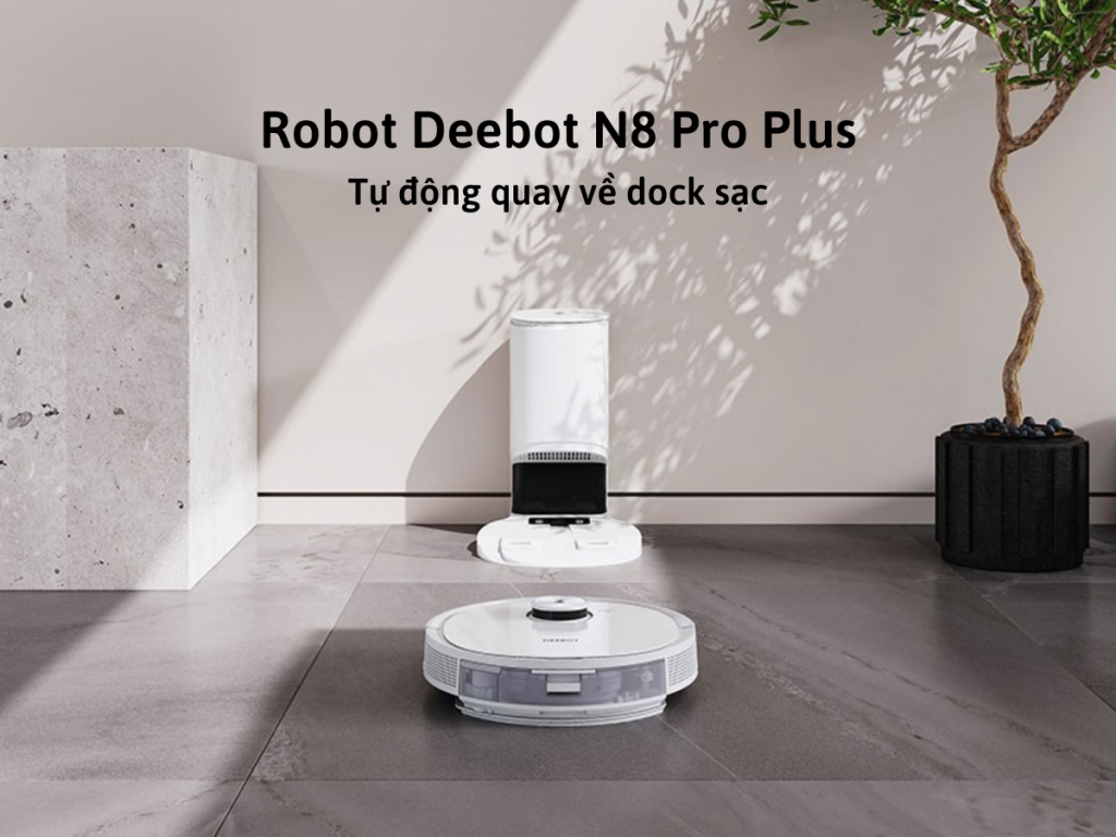 Không cần lo lắng về việc robot hết pin, N8 Pro Plus sẽ tự động quay trở về dock sạc khi cần sạc. Ngay cả khi đang làm dở công việc, sau khi sạc đủ pin, robot sẽ tiếp tục công việc mà không cần sự can thiệp của bạn.