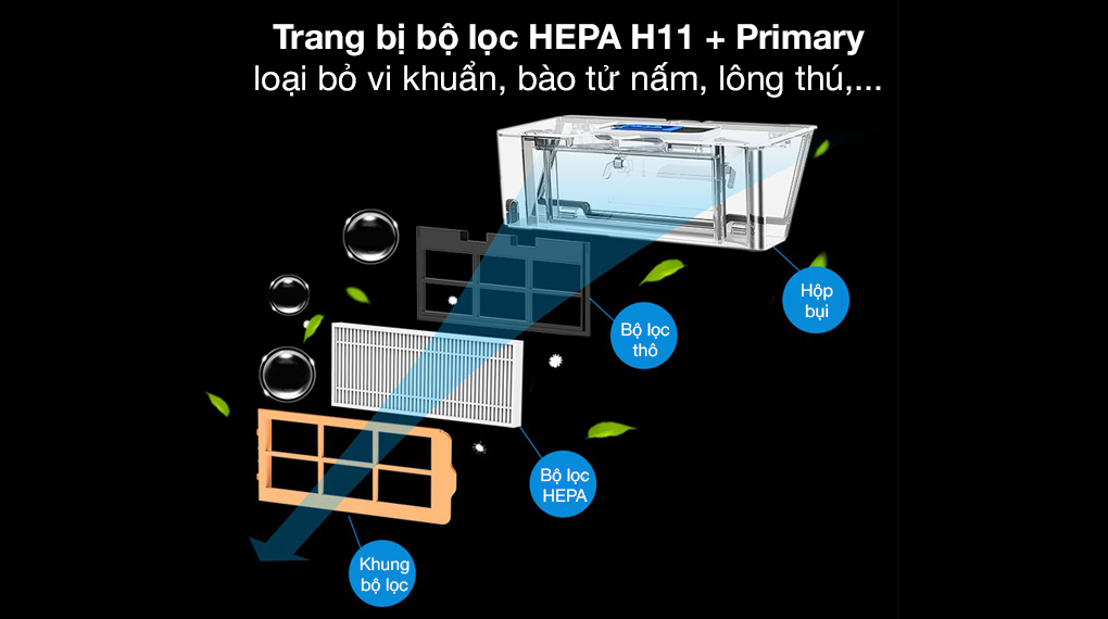 Ngoài ra, bộ lọc HEPA H11+Primary giúp giữ lại bụi mịn, vi khuẩn và các tác nhân gây dị ứng, bảo vệ sức khỏe gia đình bạn.