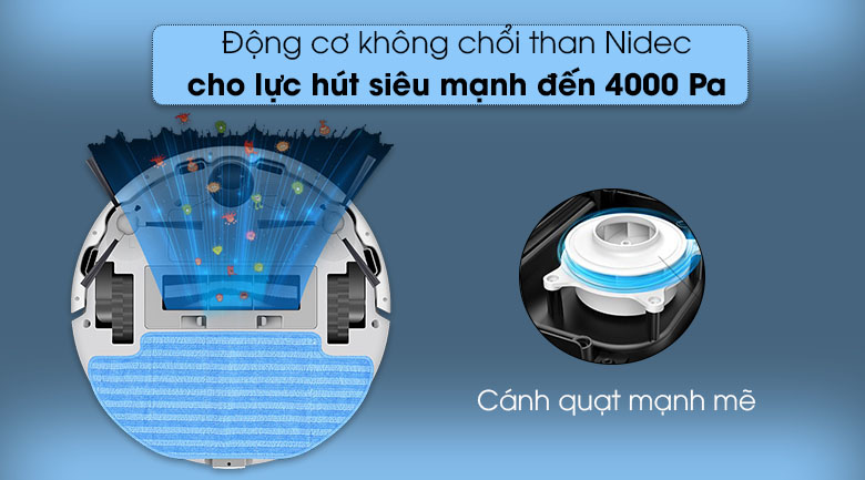 Robot Shimono ZK902 được trang bị động cơ không chổi than Nidec với công suất hút lên đến 4000 Pa, vận hành êm ái ở mức độ ồn chỉ khoảng 60 dB – tương đương một cuộc trò chuyện bình thường, không gây ảnh hưởng đến sinh hoạt gia đình.