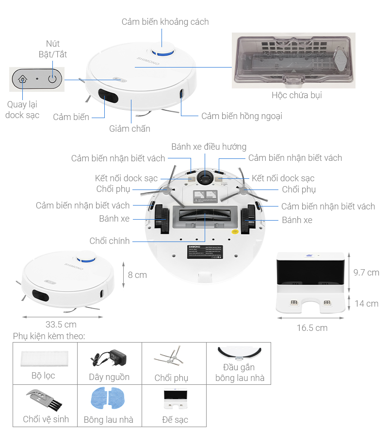 Robot Hút Bụi Lau Nhà Thông Minh Shimono ZK902 là thiết bị gia dụng hiện đại, mang đến giải pháp làm sạch toàn diện cho mọi không gian sống. Sản phẩm không chỉ tích hợp khả năng hút bụi mạnh mẽ mà còn được trang bị tính năng lau nhà với công nghệ phun nước điện tử, tạo nên một trợ thủ đắc lực giúp tiết kiệm thời gian, công sức và nâng tầm trải nghiệm dọn dẹp trong gia đình hiện đại.