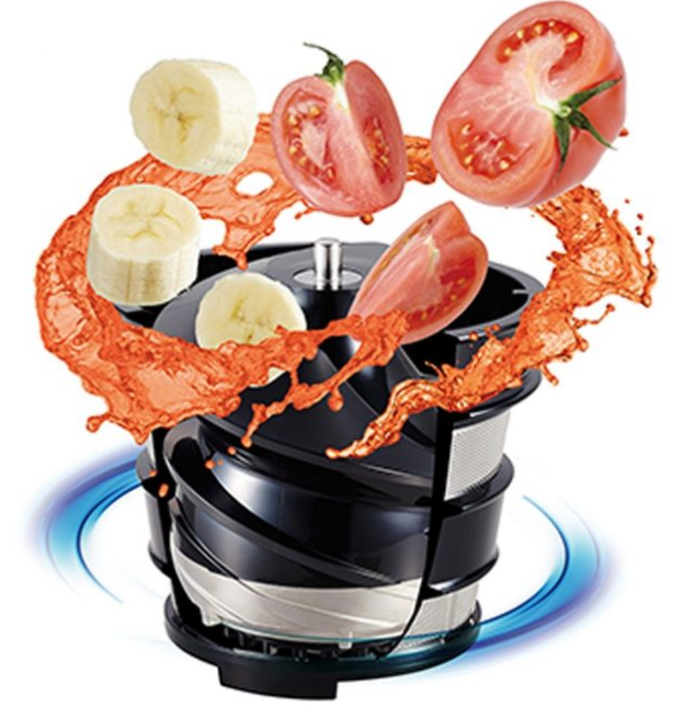 Máy ép chậm ép hoa quả dưới lực ép của trục vít đặc biệt và động cơ giảm tốc, vận tốc chỉ khoảng 45 – 85 vòng quay/phút.